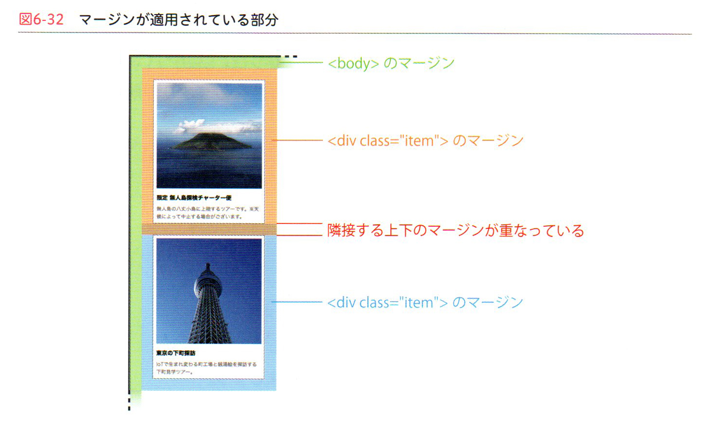 上下マージンは重なり合うと相殺され、どちらか値の大きい方がマージンとして設定される。